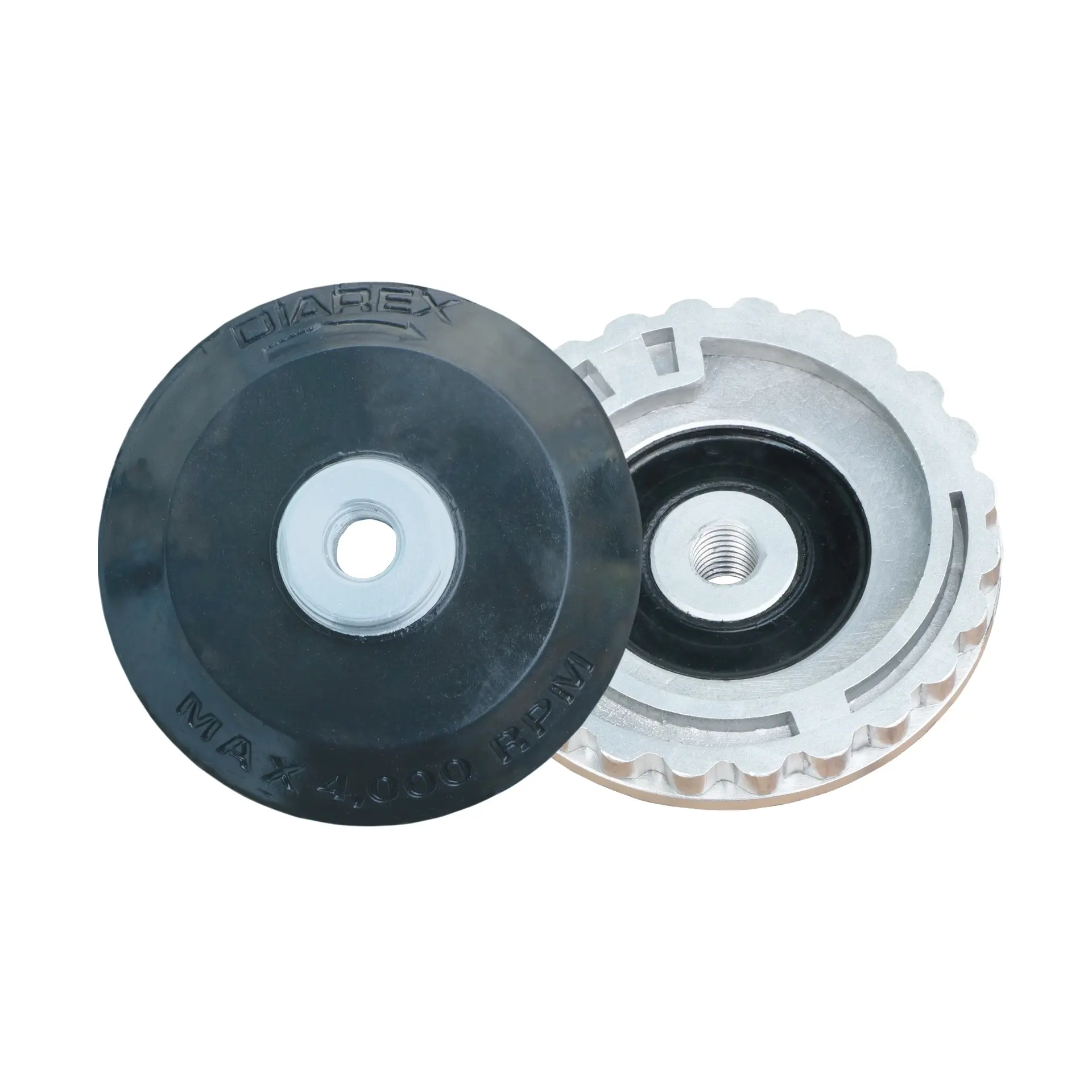 Diese Aluminium-Trägerplatten werden am Polierwerkzeug befestigt und jedes Pad verfügt über einen Snail-Lock-Adapter. Der Adapter wird durch eine Drehbewegung einrastet. Zum Entfernen der Pads diese aufdrehen und abnehmen und dann durch die nächste Körnung ersetzen.